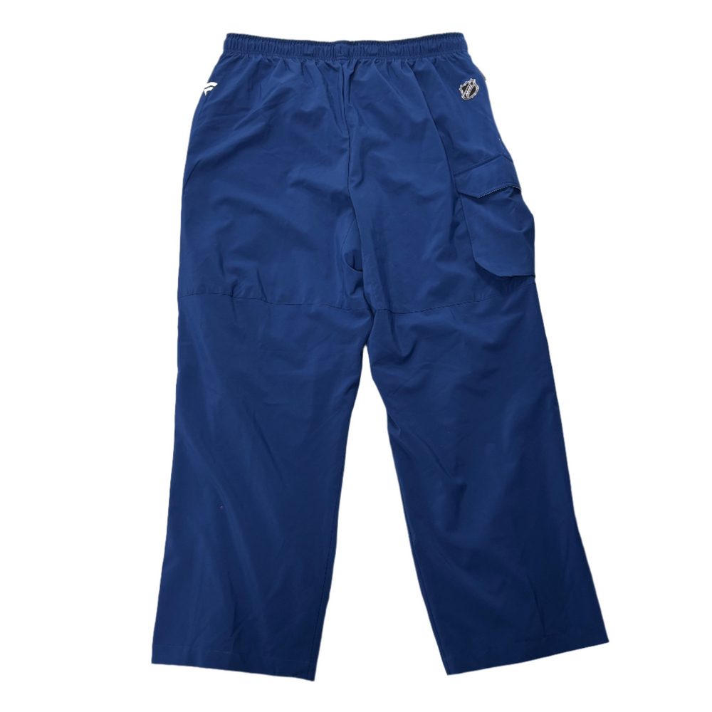 Team issued rink side pants. Comes with Fanatics branding with Leafs and NHL logo. Two zip pockets, one open pocket, and zipped ankles.