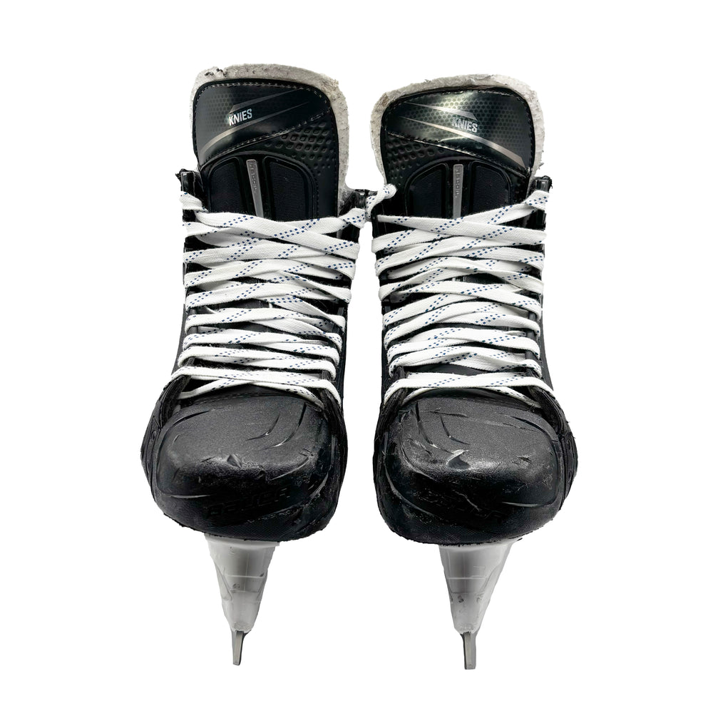 Game used Matthew Knies Bauer Hyp2rlite skates. Skates have been authenticated and photo matched by Real Sports (MLSE Official Retailer). Used by Knies in the 2024-25 Home Opener Victory (4-1 vs Pittsburgh Penguins) in which he scored his first of the season. Steel is included with this set.